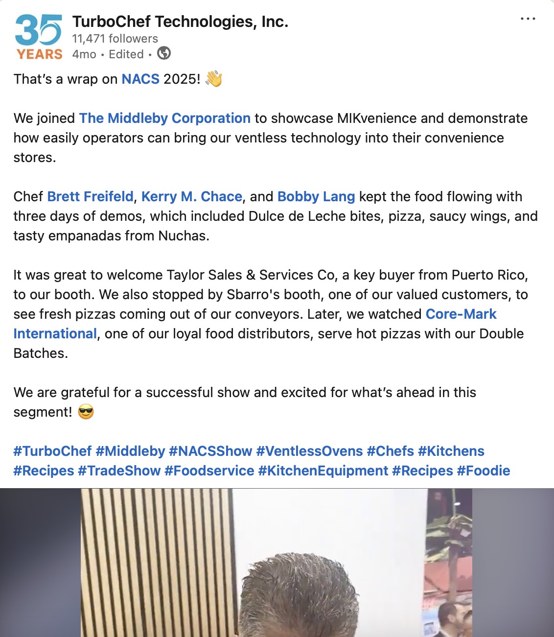 I led content creation for TurboChef and CookTek, capturing everything from photo and video to on-the-fly moments, then shaping and posting content to keep both brands engaged and growing.